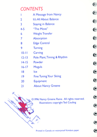 Nancy has written an excellent ‘Pocket Guide to Skiing’ printed on waterproof paper! This little booklet contains a wealth of information and is available from Nancy for $20.00, including mailing in Canada. For USA and international orders, please add $5.00 per copy. See the contact page for Nancy’s address.
