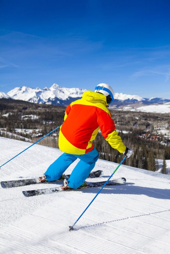 For your first run of the year, pick an easy slope and do as many short quick turns as you can seeking a centered balanced position and once again finding the rhythm as your weight moves from foot to foot. You will find that if you can get on the balls of your feet the turns will be easier. It’s always a good idea to take a private lesson early in the season as an experienced ski pro can help you avoid building bad habits. It’s really good to take a lesson if you’ve purchased new carving skis as the best technique for them is definitely different and you won’t get the full benefit out of the skis unless you do it right.
